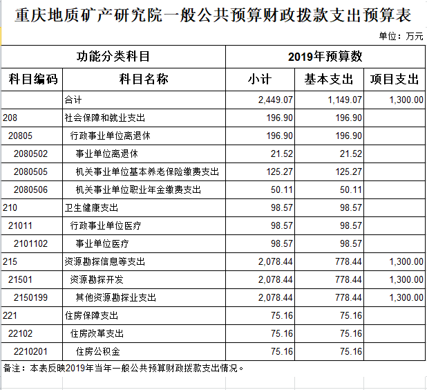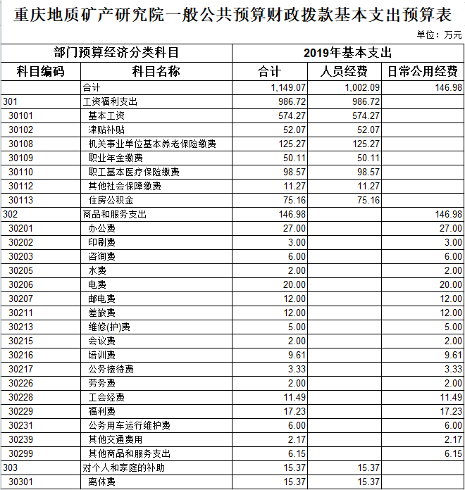重慶地質(zhì)礦產(chǎn)研究院2019年部門預(yù)算情況說(shuō)明